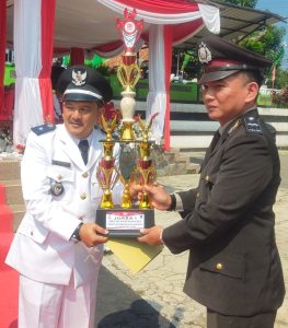 Penyerahan trophy dan piagam penghargaan diberikan langsung oleh Andrew Mandala, selaku anggota DPRD Kabupaten Subang, kepada Agus Setiawan, Kepala Desa Sukamandi.