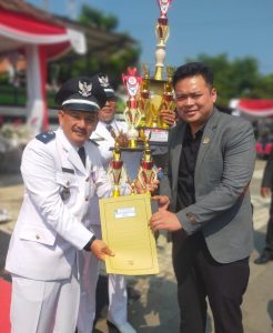 Penyerahan trophy dan piagam penghargaan diberikan langsung oleh Andrew Mandala, selaku anggota DPRD Kabupaten Subang, kepada Agus Setiawan, Kepala Desa Sukamandi.