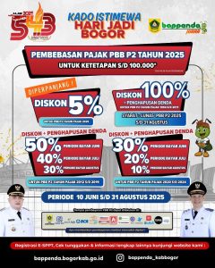 Dalam rangka Hari Jadi Bogor ke-543 ini, Pemerintah Kabupaten Bogor memberikan Kado Istimewa bagi seluruh masyarakat Kabupaten Bogor yakni, dengan mengeluarkan kebijakan Relaksasi PBB P2, sebagai berikut:
